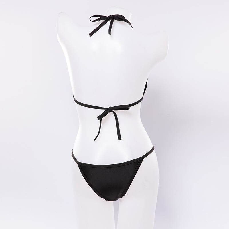 No built-in padded bra, the triangle halter top can be fitted with adjustable spaghetti straps, offer a feminine flair to this enticing silhouette.