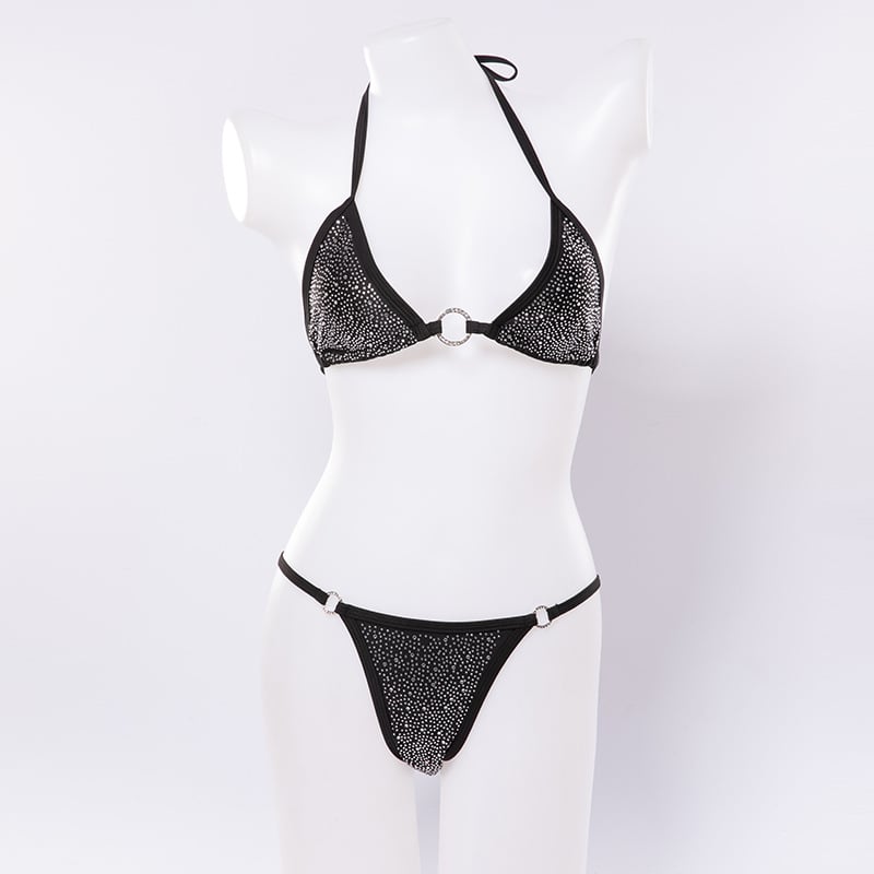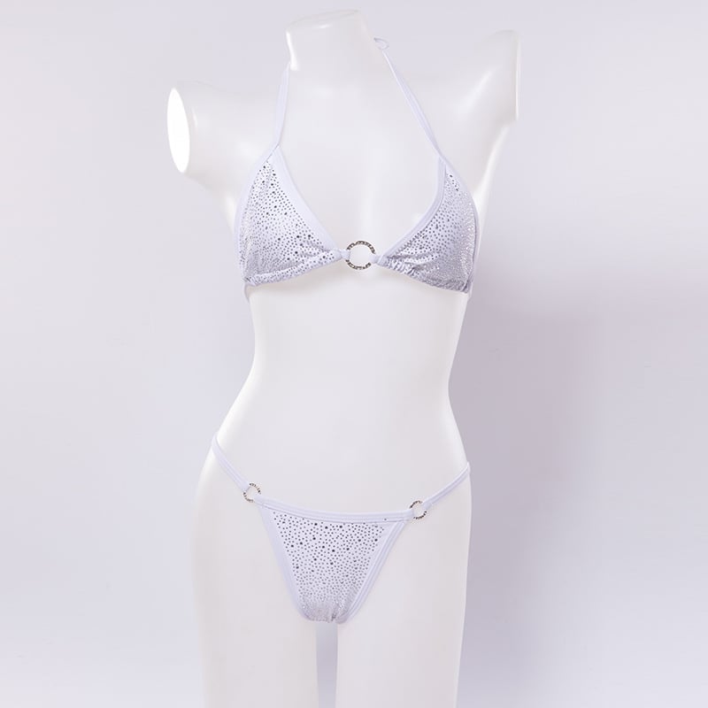 Sparkly Halter Circles Two Pieces Swimsuit Bikini Set Tie up Back