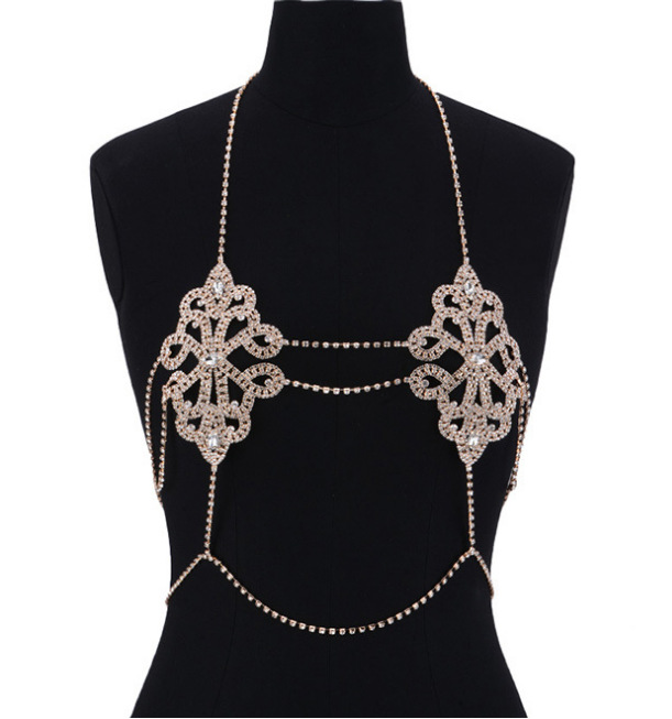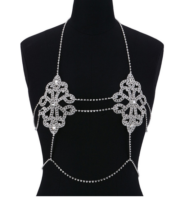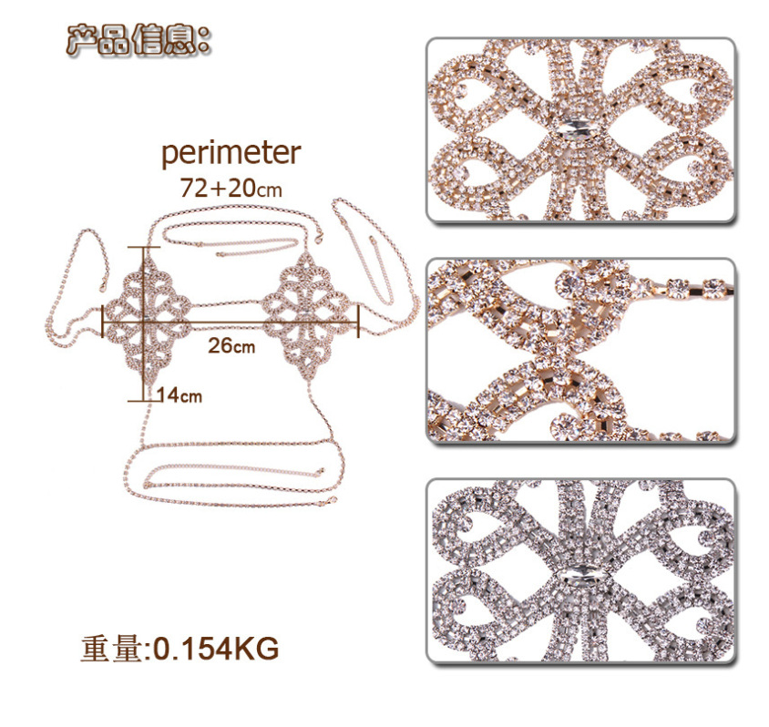 Crystal Hollow Out Flower Shape Body Chain for Women Fashion Bikini Bra Chain