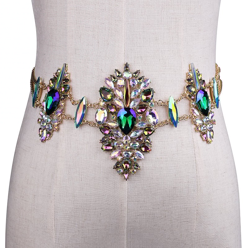 This extravagant exaggerated waist chain for women and girls is made of high-quality metal and acrlic pendant.