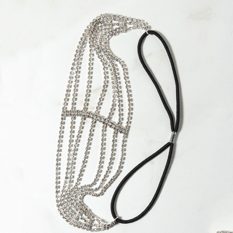 Crystal Multi-Layers Headband for Bride with Elastic Closure