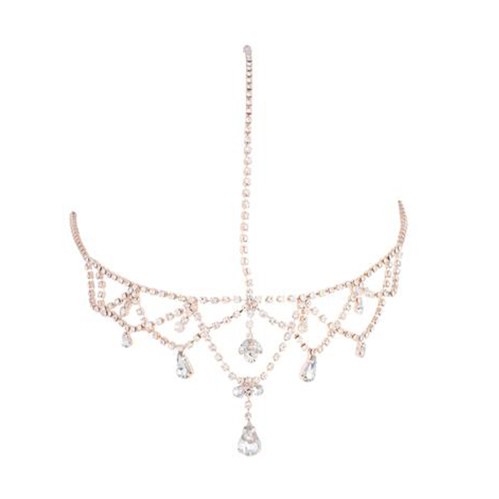 Gothnic Crystal Lyered Hair Chain with Waterdrop Rhinestone Pendant