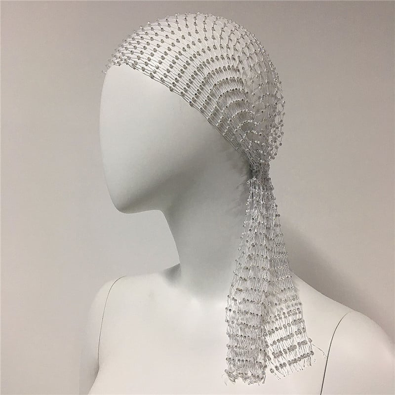 African Style Crystal Fishnet Kerchief Elastic Carnival Hair Cap