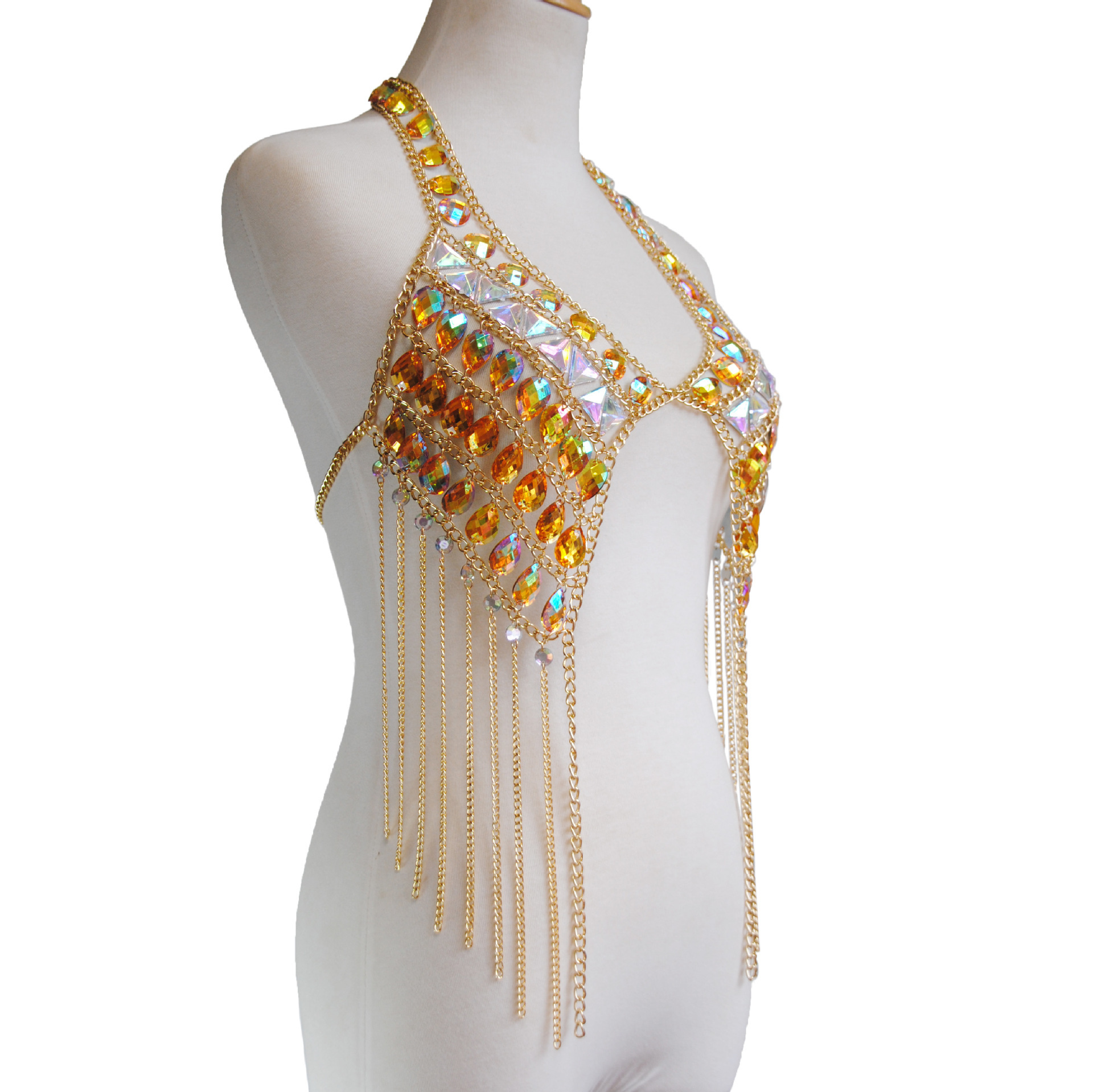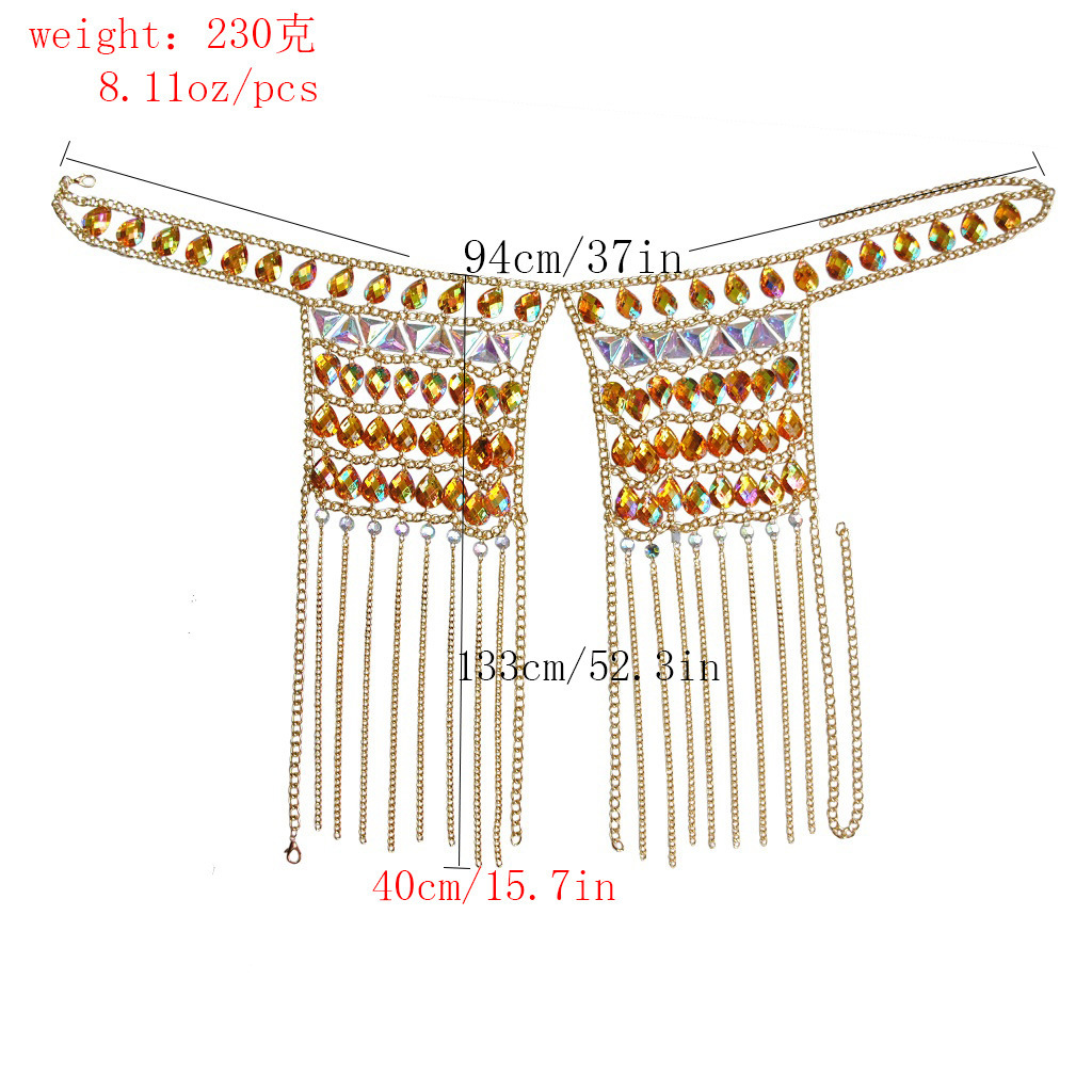 Retro Golden Halter Pendant Bra Tassel Rhinestone Body Chain