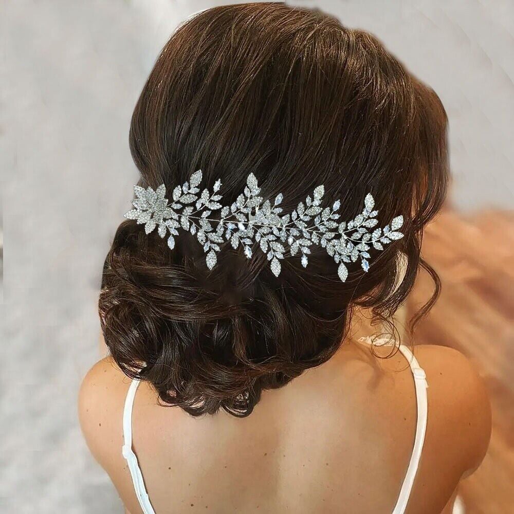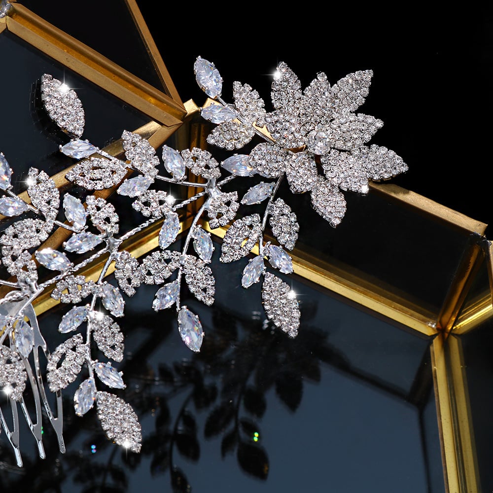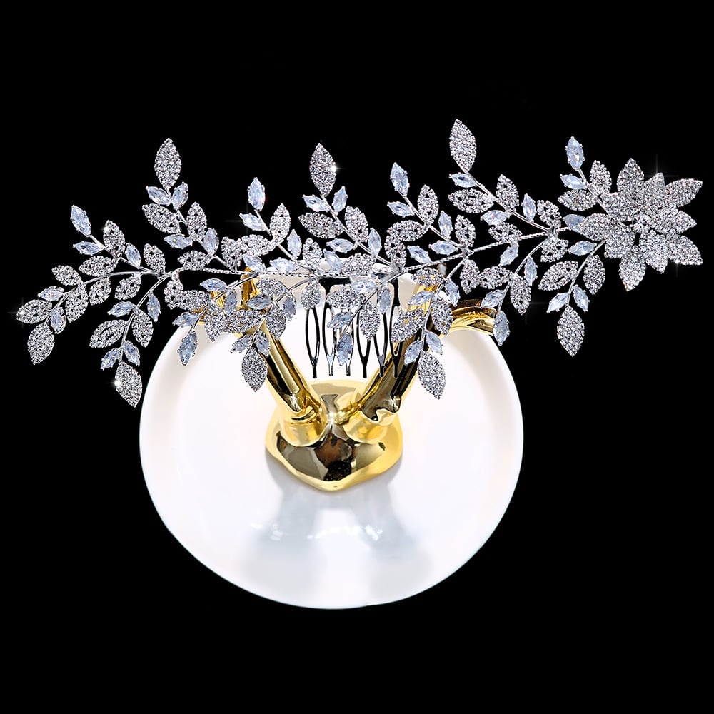 It has sparkly crystal leaves and flowers to really focus on a gorgeous look for the bride. It has a lucurious shines and luster.