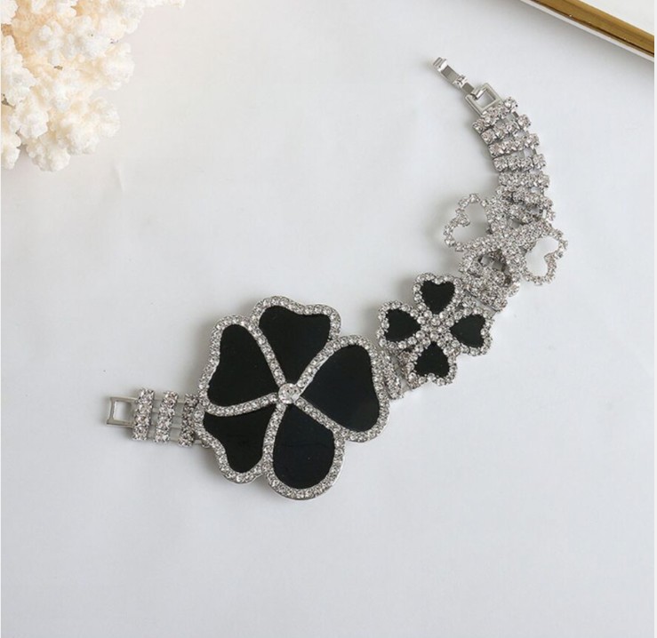 The flower power choker necklace, bracelet, embellished with crystals and adjustable clips;