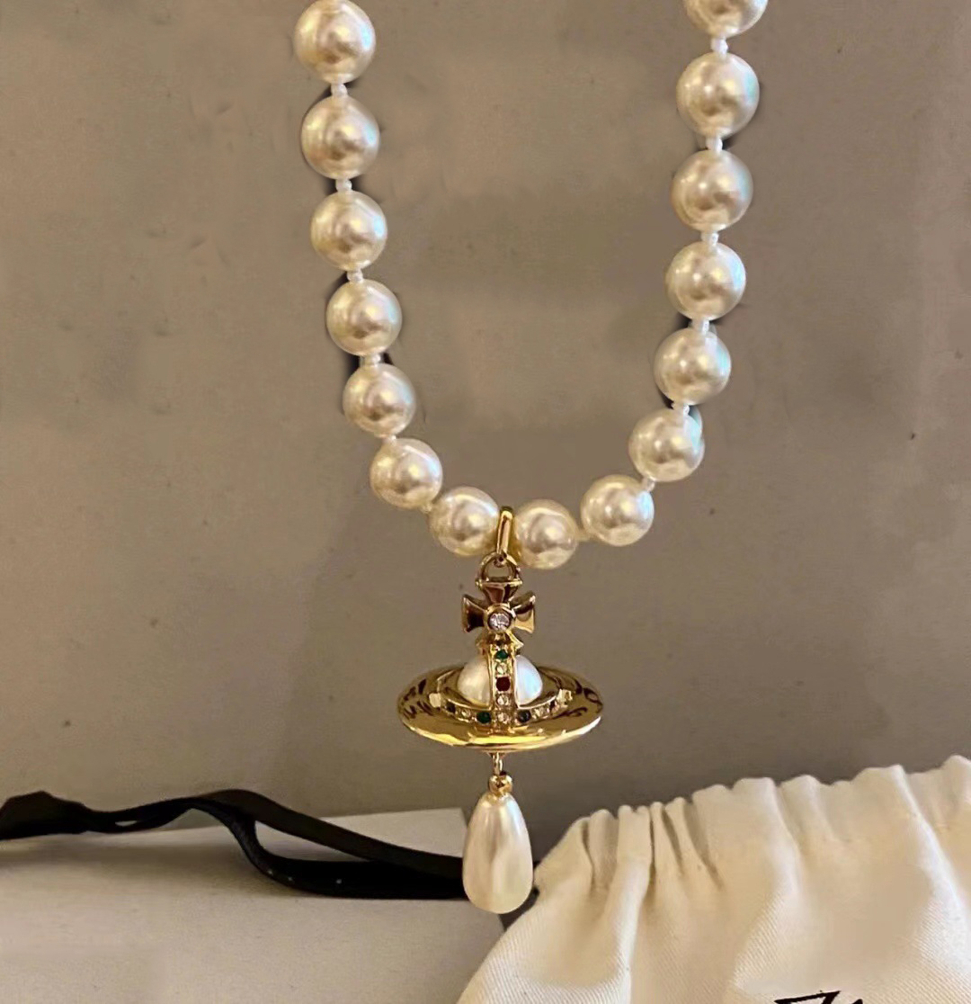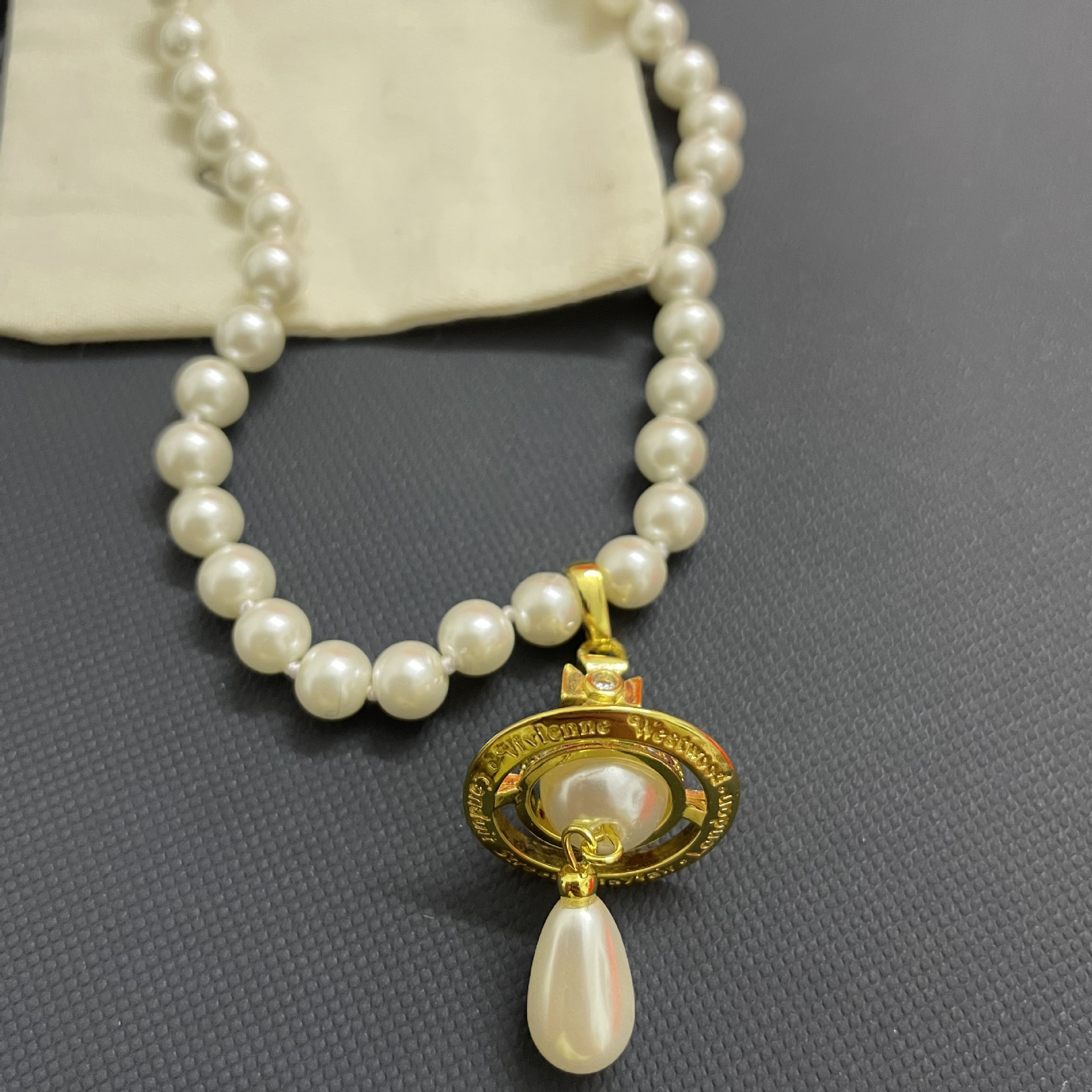 White Pearl Necklace with Waterdrop Pearl and Plante Pendant Baroque Women's Choker