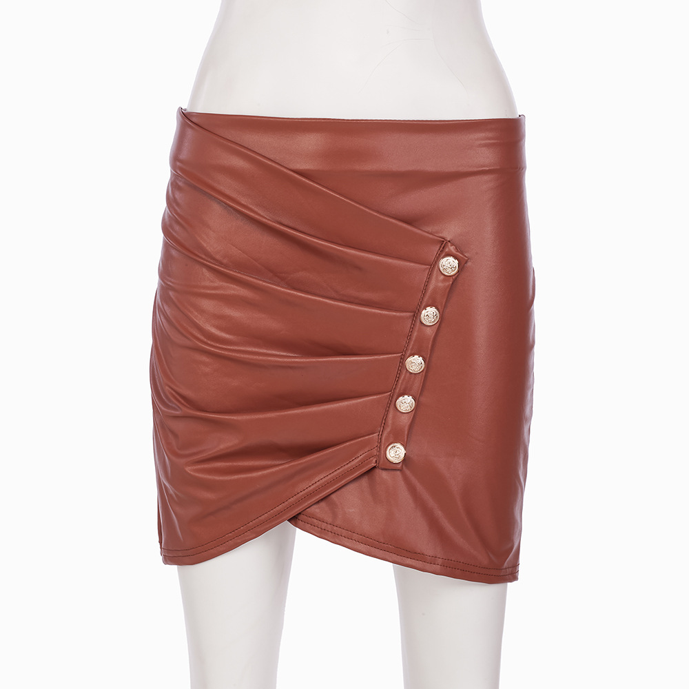 Slim-fitting PU Wrapped Pencil Skirt With Buttons