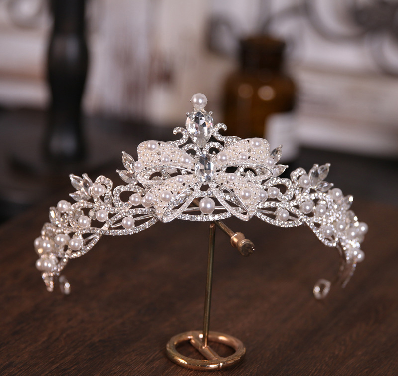 Baroque Women Unique Crown with Sparkling Crystal and Pearls Balrog Butterfly Headwear for Bride