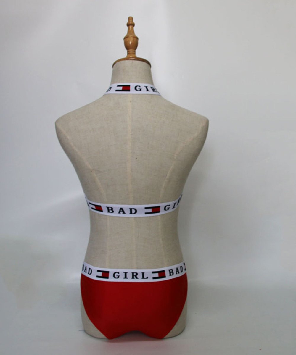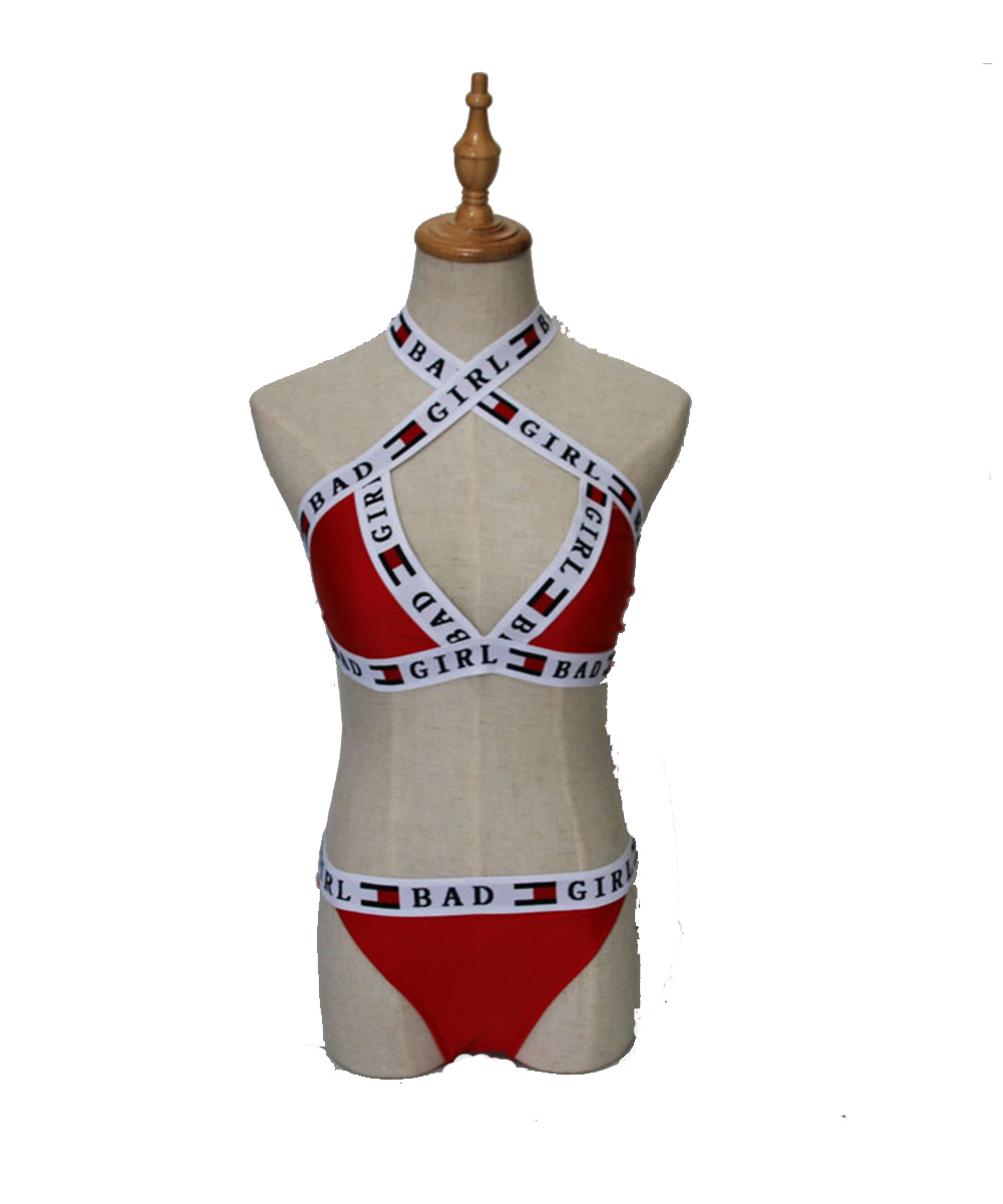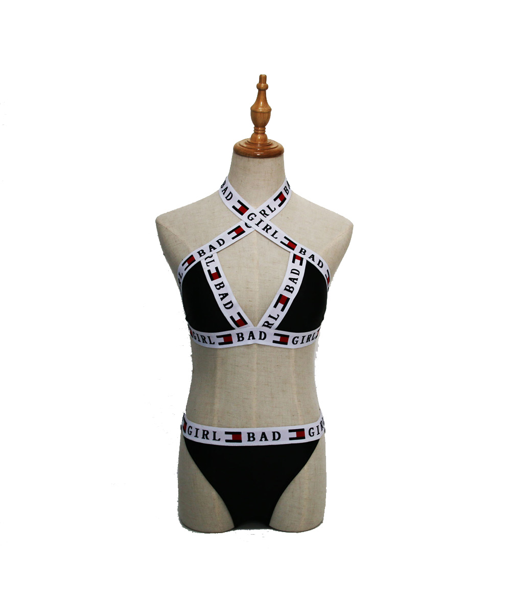 Cross Straps Letter Print 2PCs Bikini Swimwear for Girl with Bandage Back