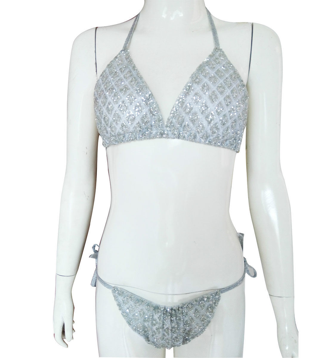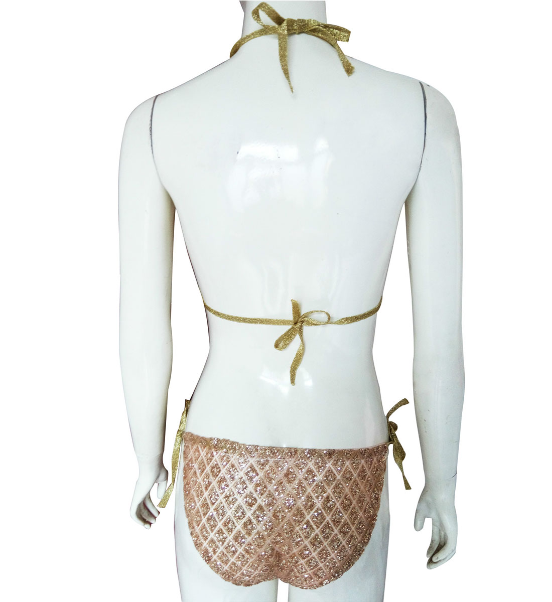 Sequin Sexy Tie Up Bikini Swimsuit for Women Bandage 2PCS Halter Swimwear for Girls