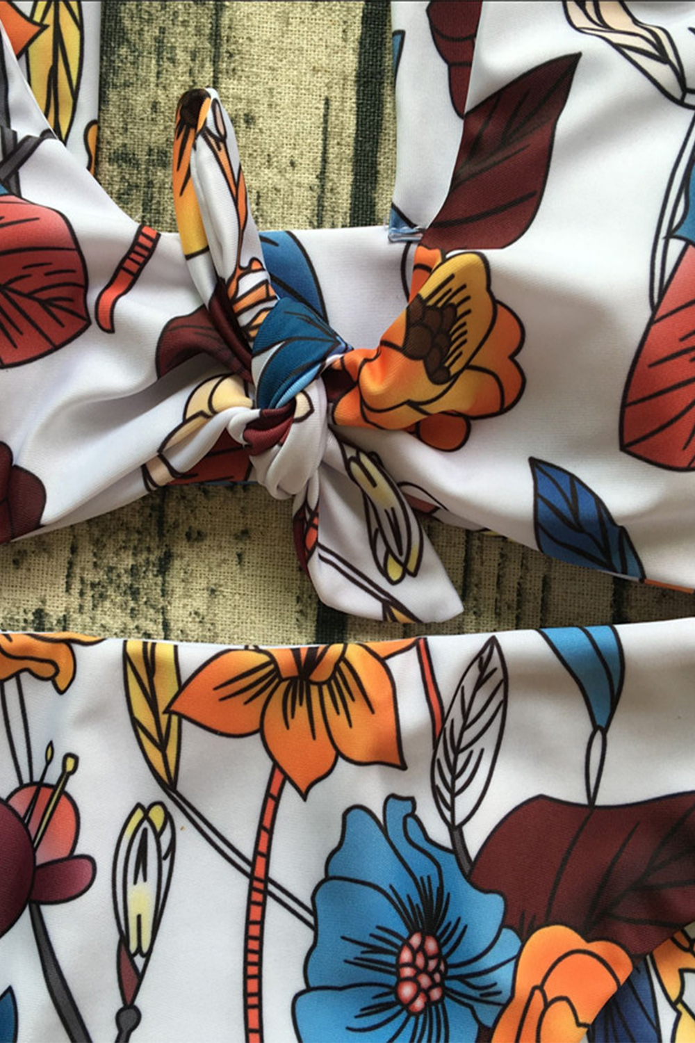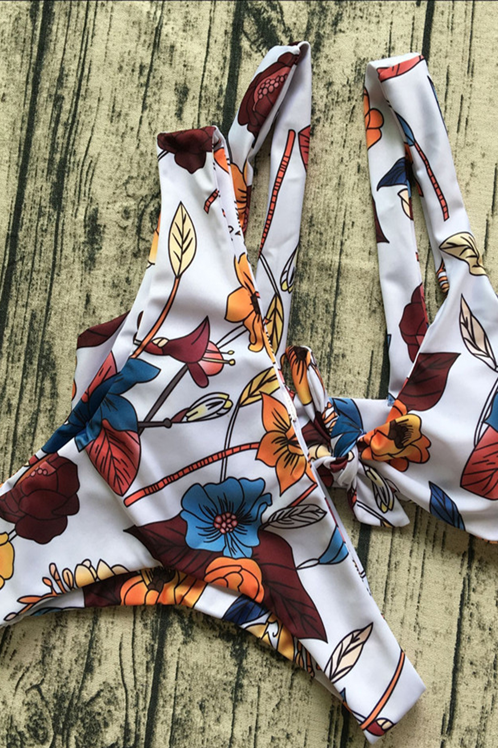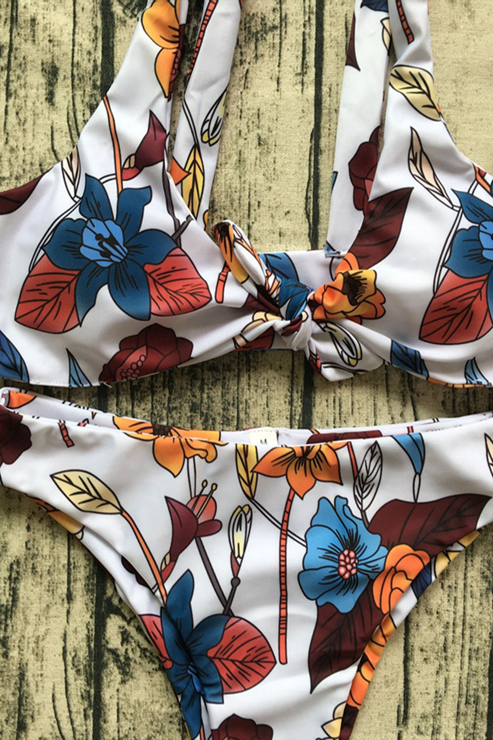 Cute Floral Print Swimsuit Tie Know Front Two Pieces Swimwear Bikini For Women