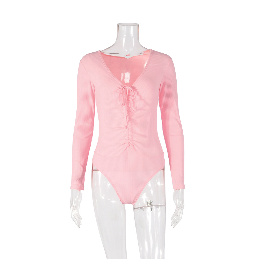 Long Sleeves V-neck Drawstring Bodycon Fitted Jumpsuit