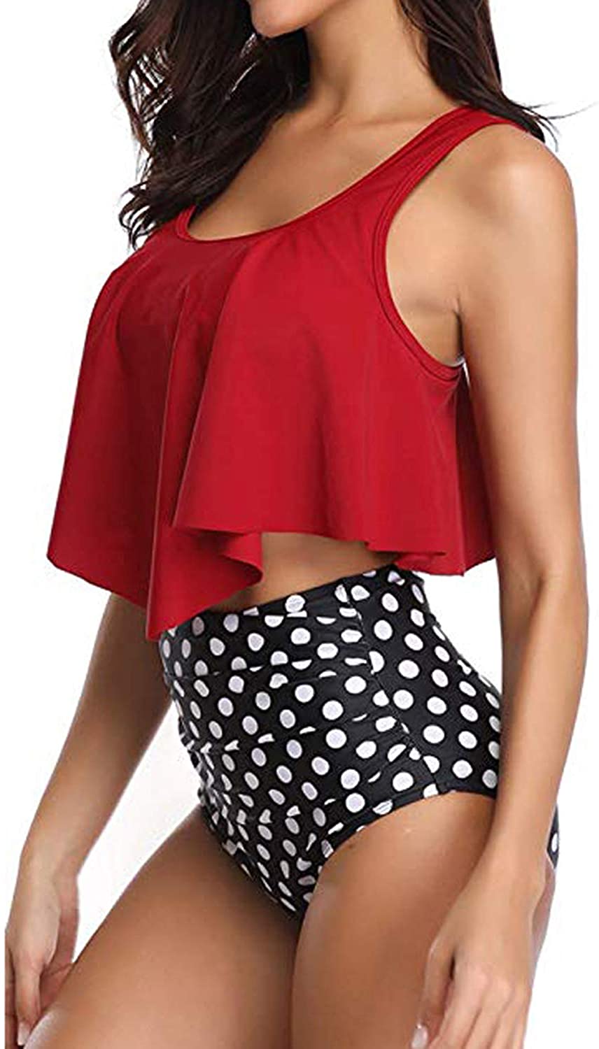 High Waisted Women Swimwear flounce Top Racerback Vintage Ruched Two Pieces Bathing Suit