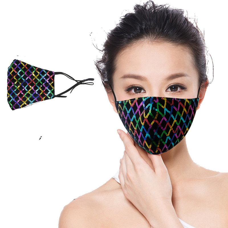 Colorful Sequin and Cotton Anti-dust Respirator for Both Women and Men 3 Pieces