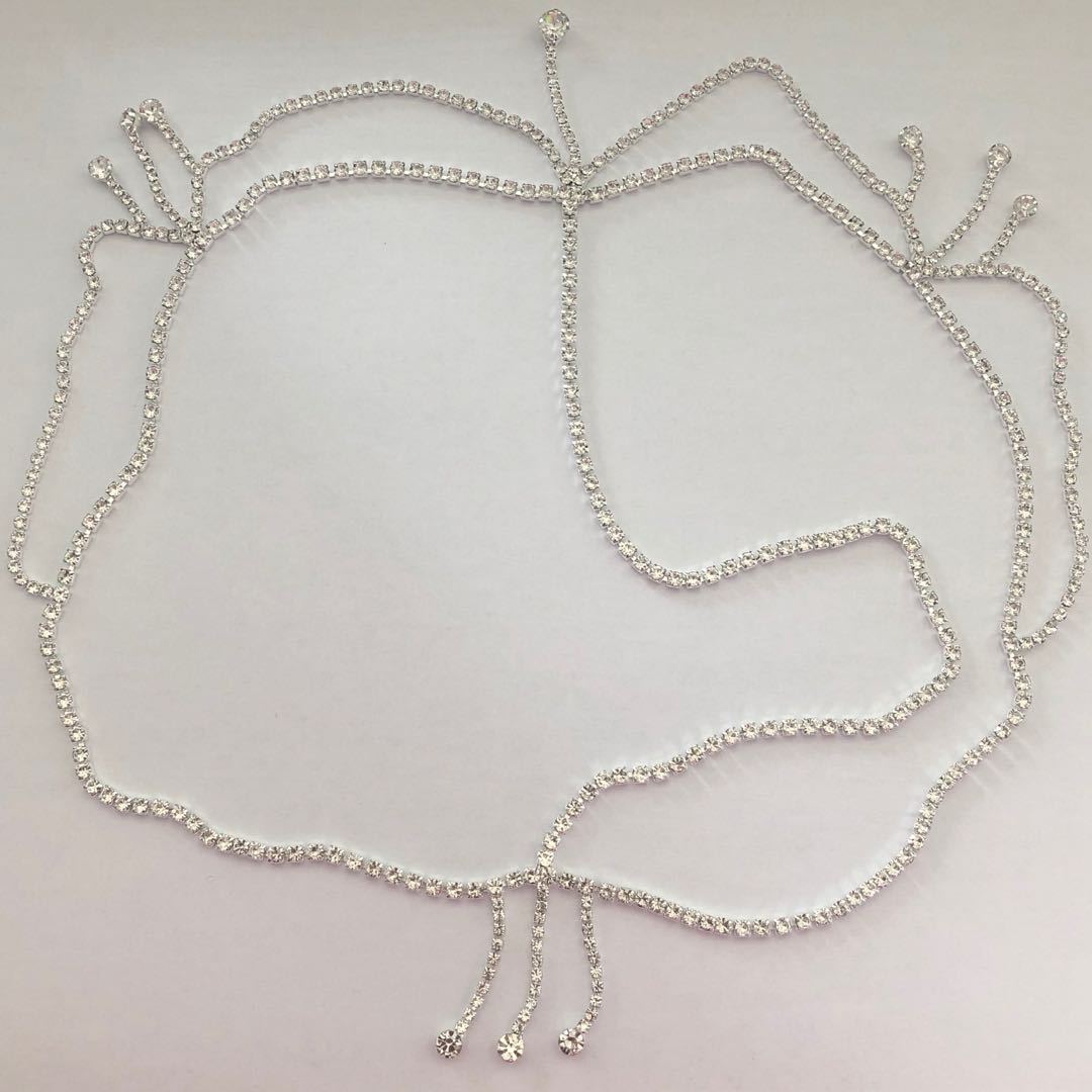 Bohemian style bride's hair accessory features wave shape chain and short tassels, simple but elegant.