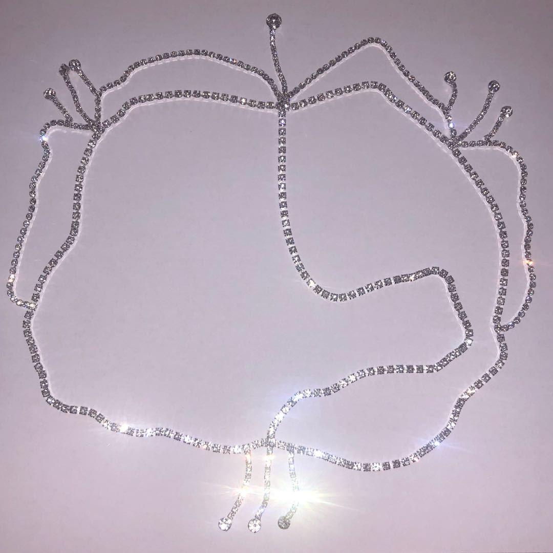It is made of crystal and alloy. The claw chain has 2 color options, silver and golden.