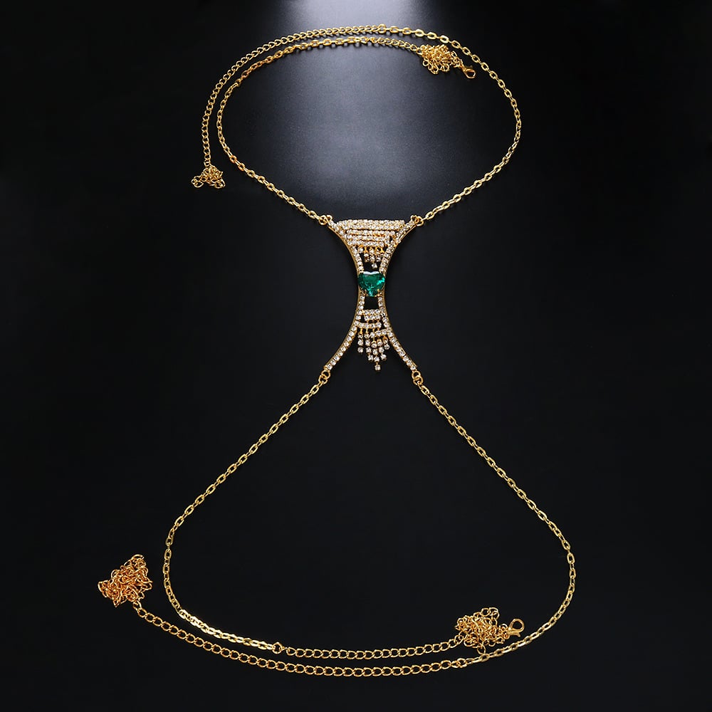 Arc-shaped Bust Chain With Tassel And Colored Sweetheart Rhinestone