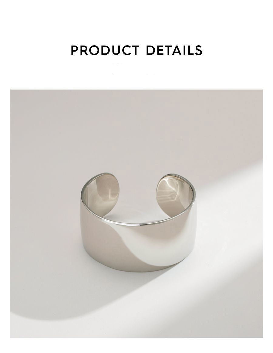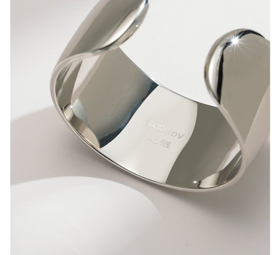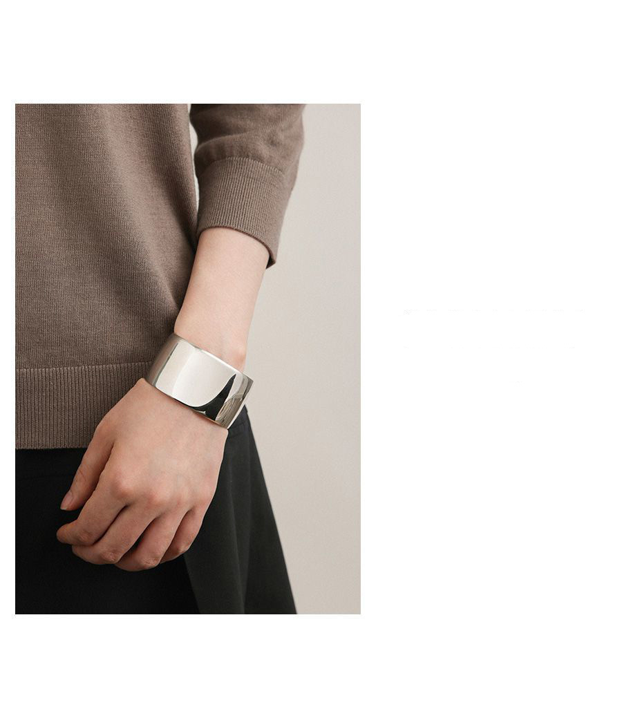 Solid Wide Mirror Half Opening S925 Silver Bracelet