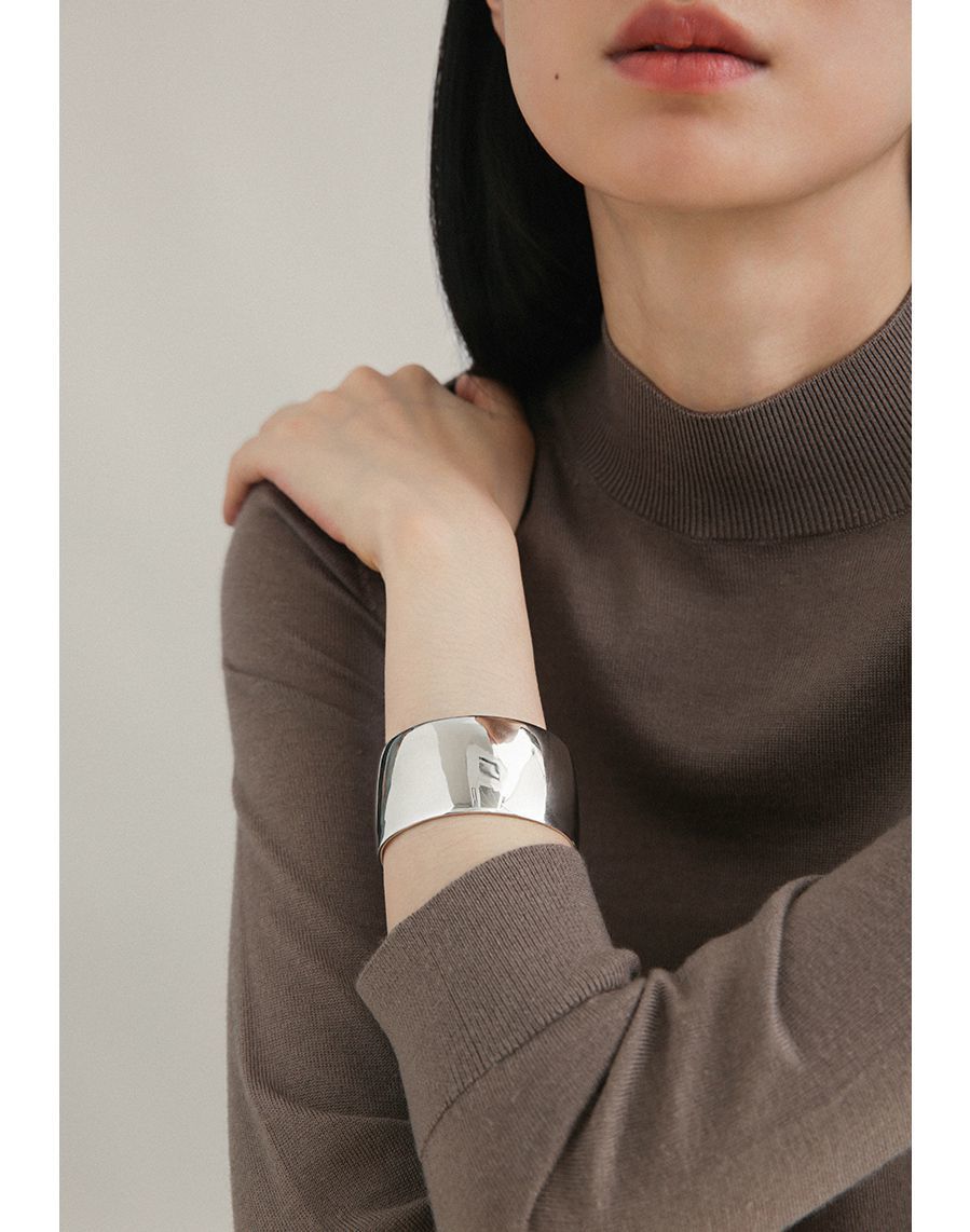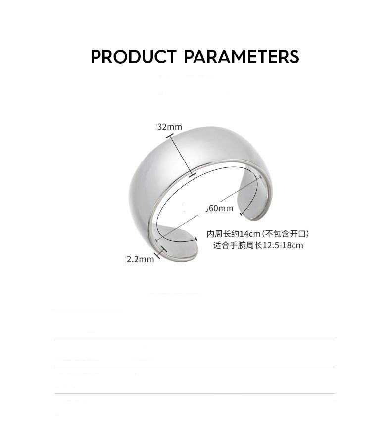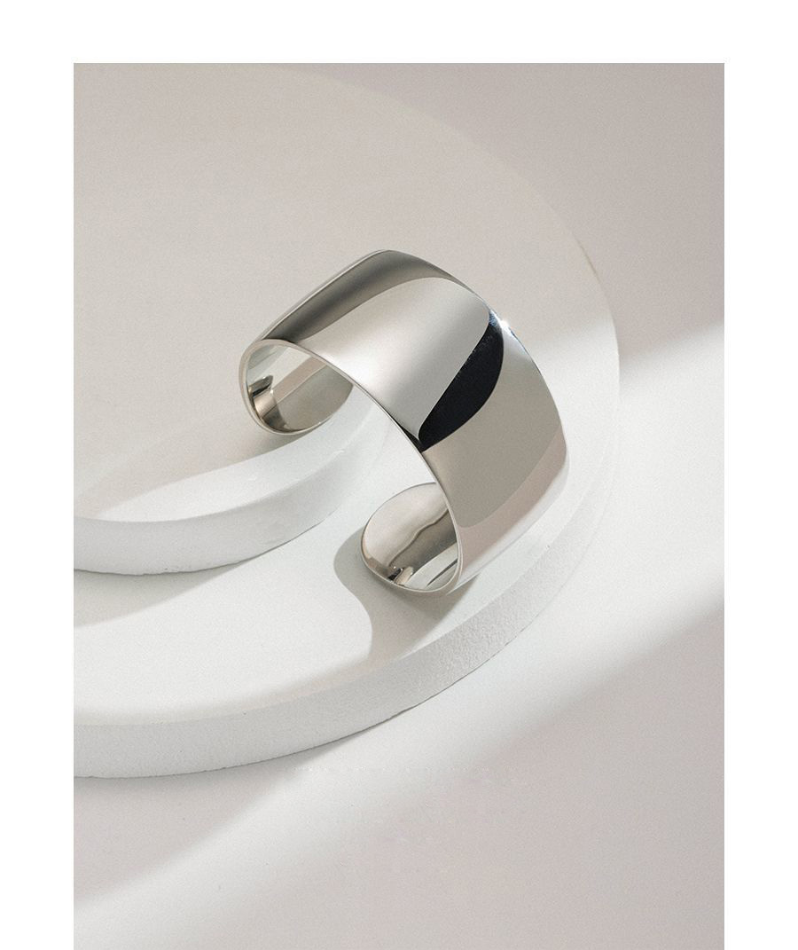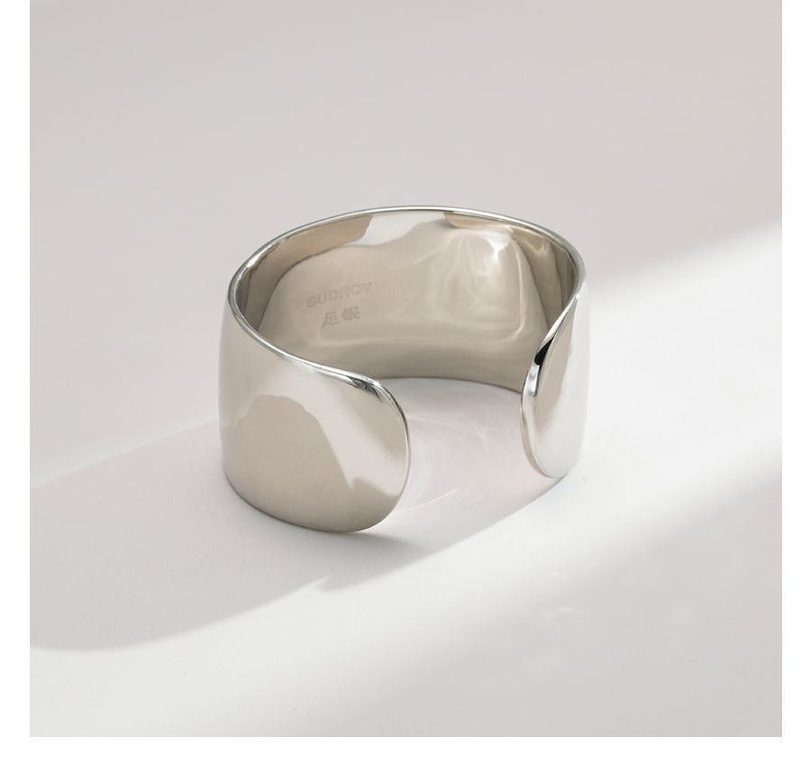 Solid Wide Mirror Half Opening S925 Silver Bracelet