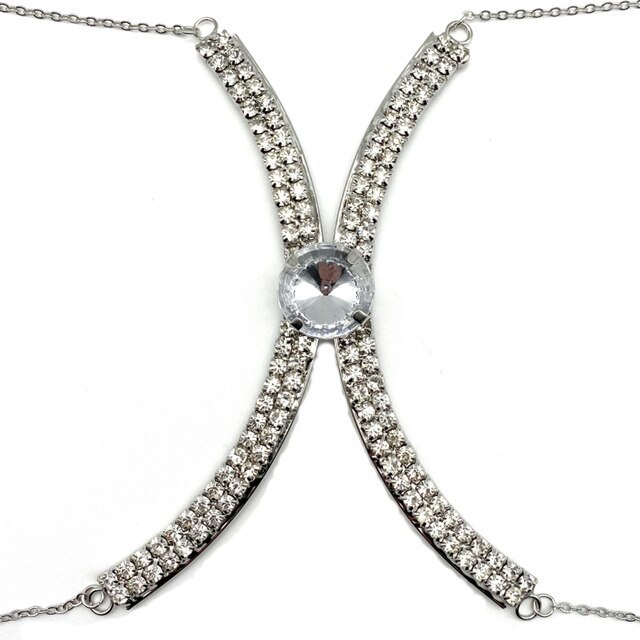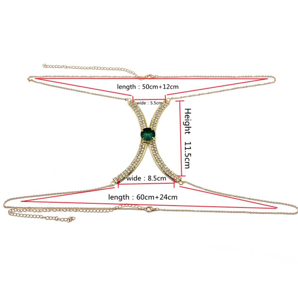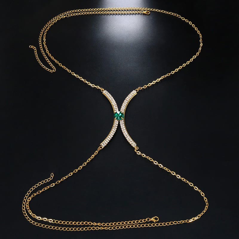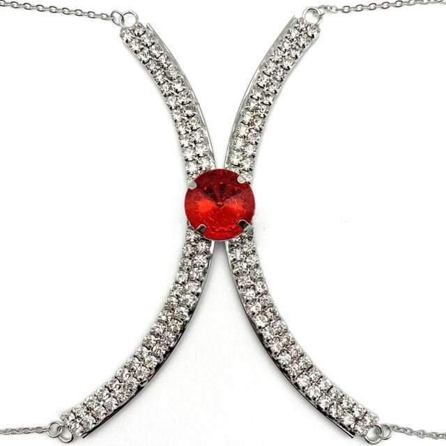 Stand Out Arc-shaped Bust Chain with Colored Sweetheart Rhinestone