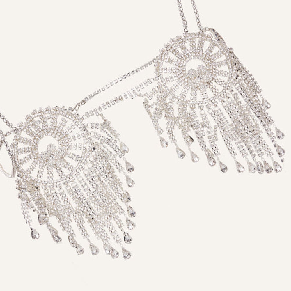Diamante Hollow Out Circle Bust Chain Persoanlity Sparkly Tassel Body Jewelry