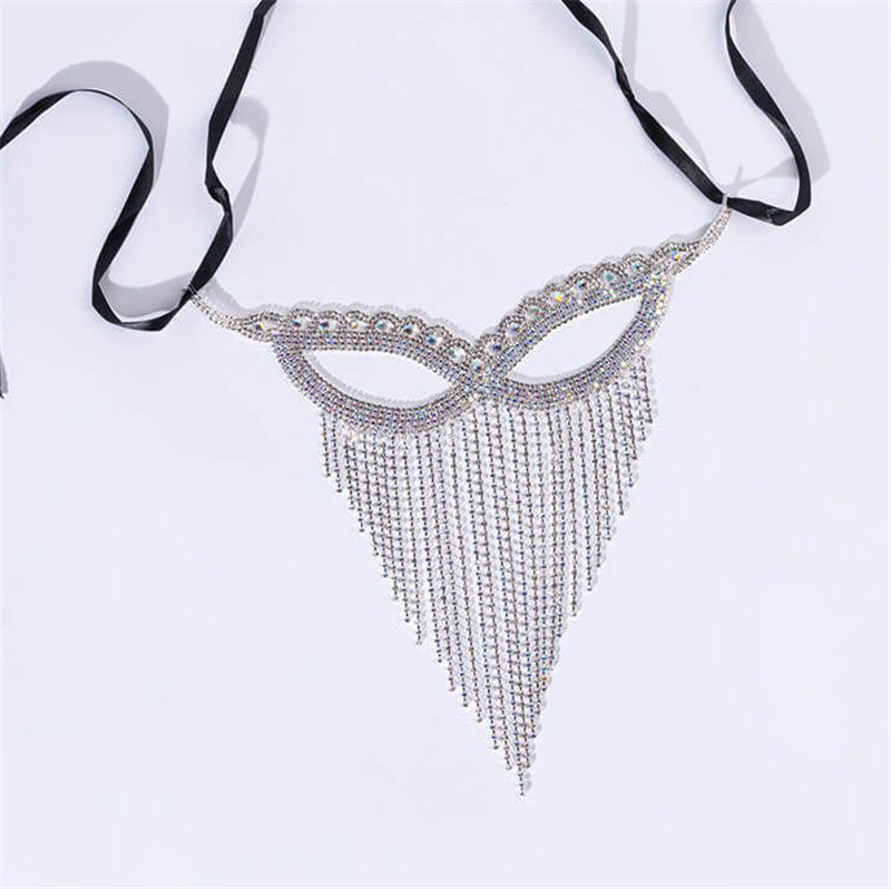 Exaggerated Tassel Rhinestone Masquerade Mask in Butterfly Shape