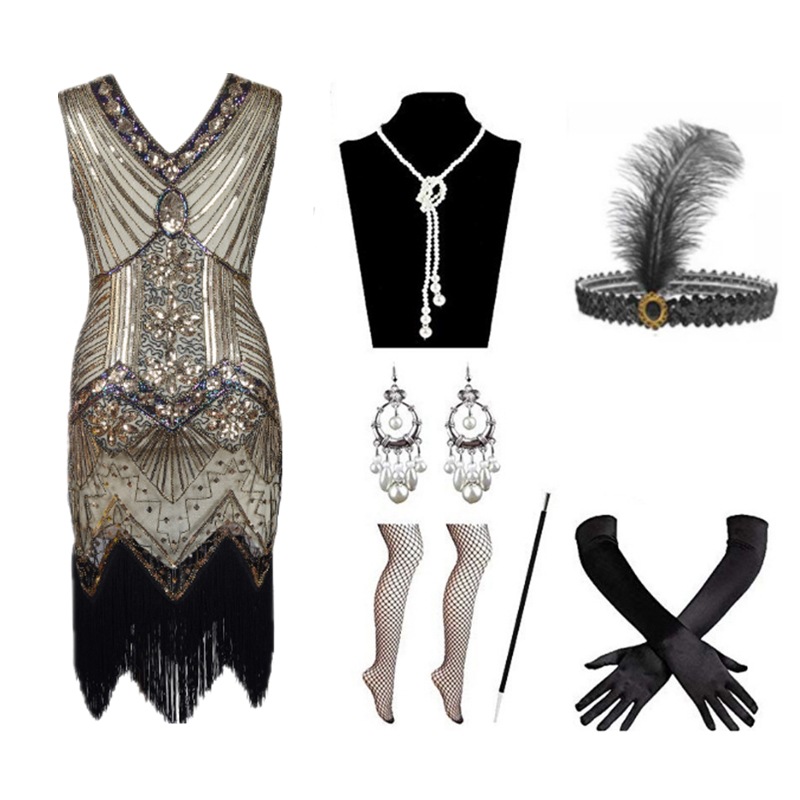 1920S Vintage Sequined Tassel Party Dresses Ensemble