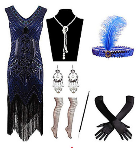This sparkly vintage party dress is inspired by the film "The Great Gatsby". Sequins, shift silhoutte, waggle tassel, high waisted, sleeves, and V-neck, the present of 1920S style.