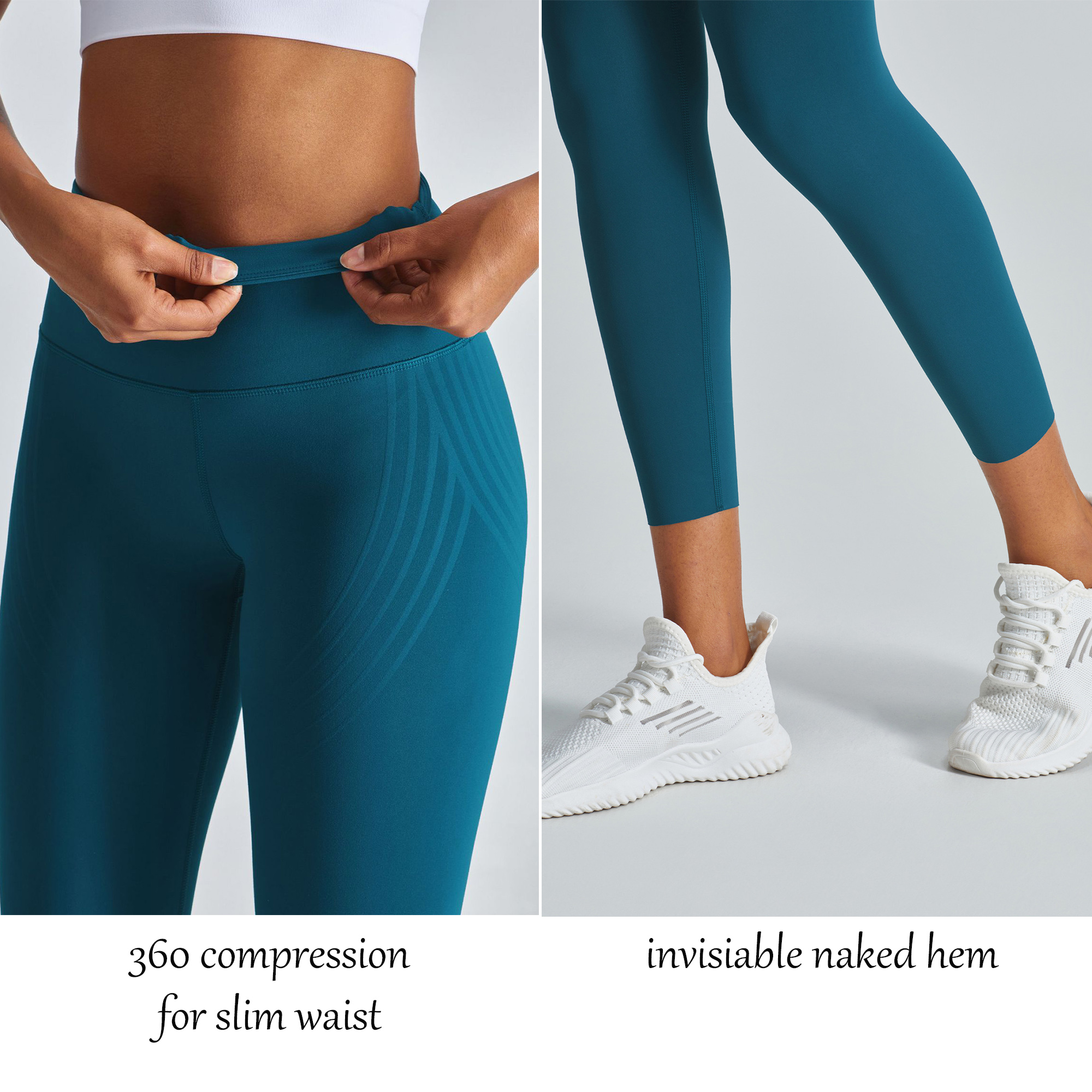 The spotlights of comfy running workout legging is the adding of lycra, significant resilience, longer time shape retention, improved polish resistance, more stretchy and comfortable to wear. Other spotlight of this sports legging is it is reversible, you don't need to take time to distinguish the obverse and the reverse.