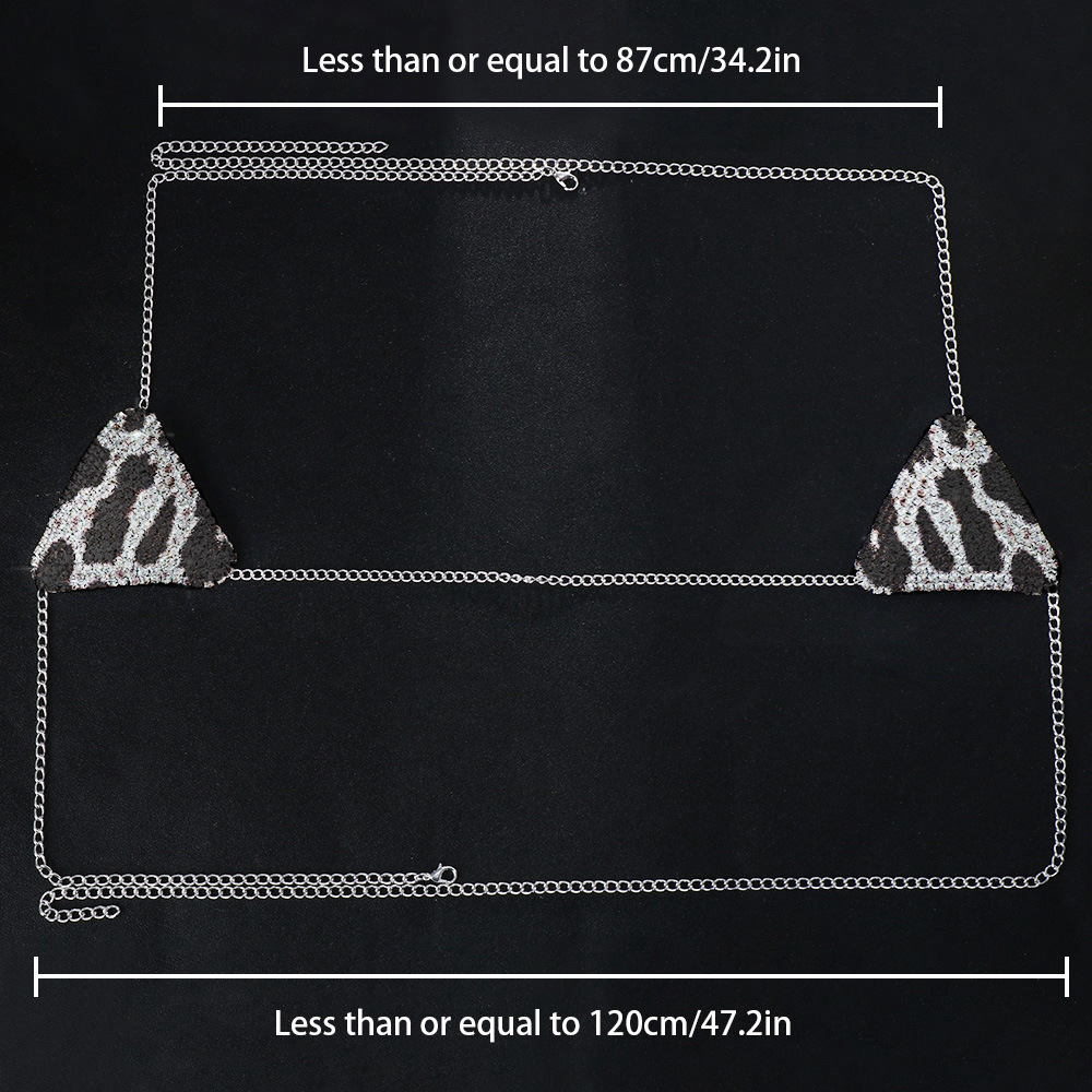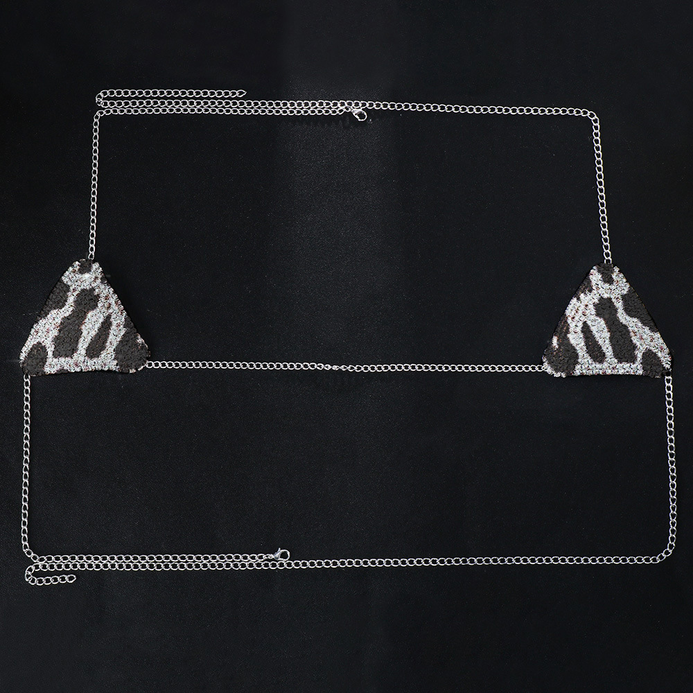 Triangle Leopard Print NuBra Chest Chain Crystal Halter Bikini Jewelry