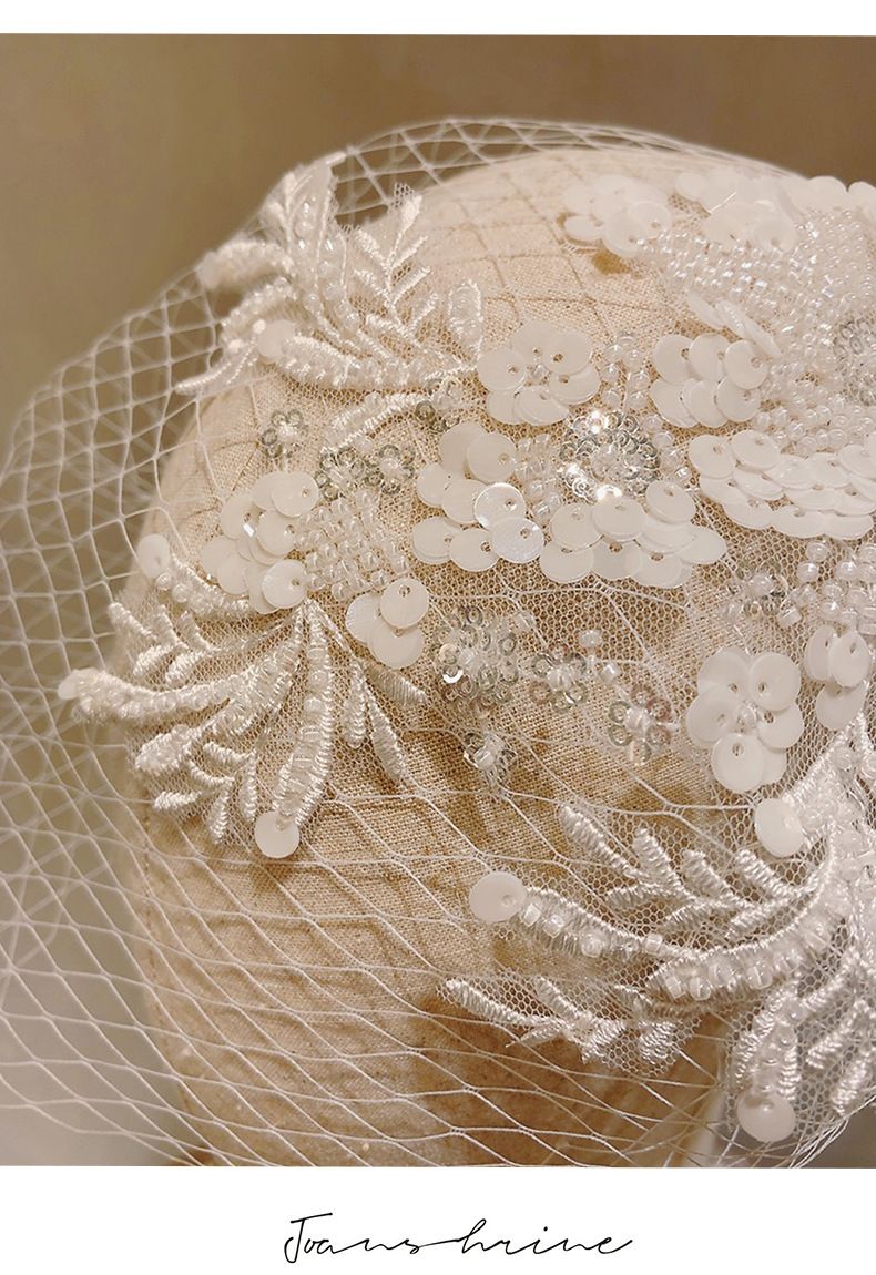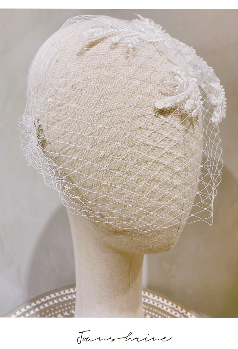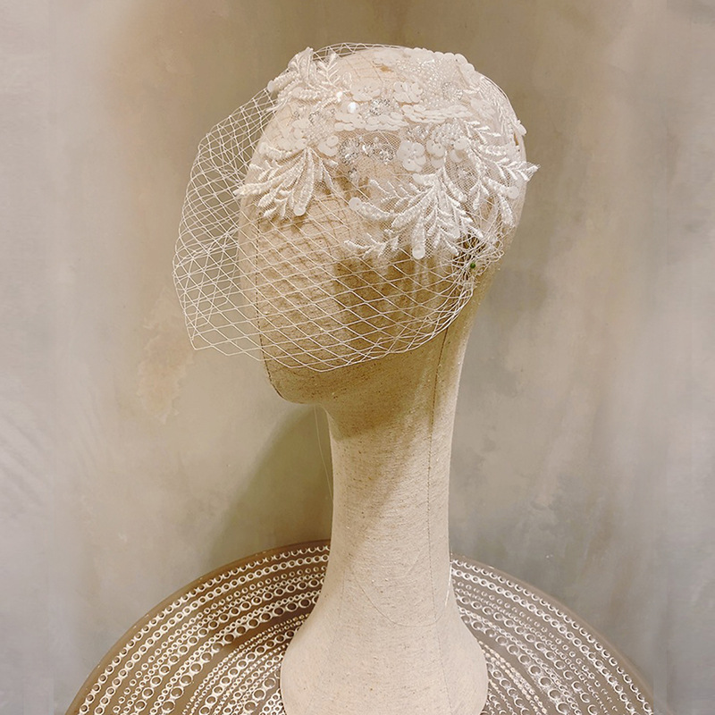 White Vintage Short Bridal Veil Embellished Mini Length Wedding Dinner Headwear