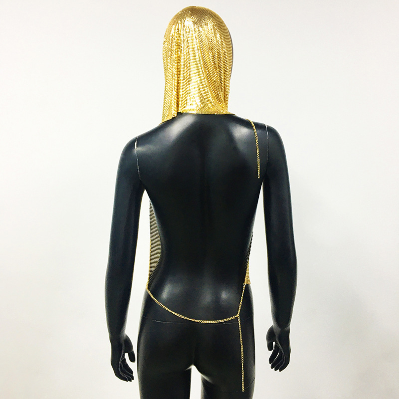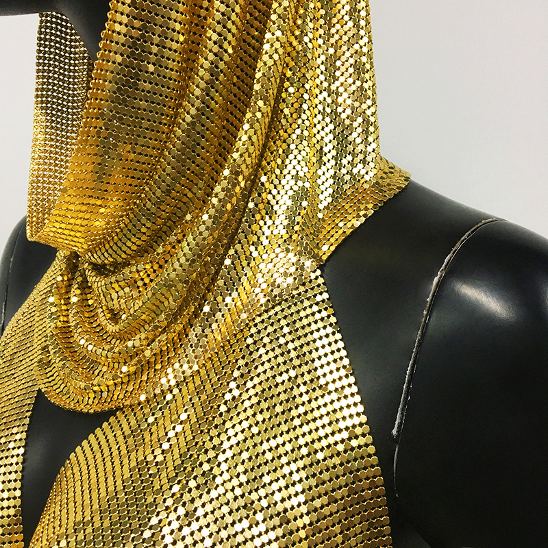 Shine Metallic Hooded Backless Chainmail Crop Top Headscarf