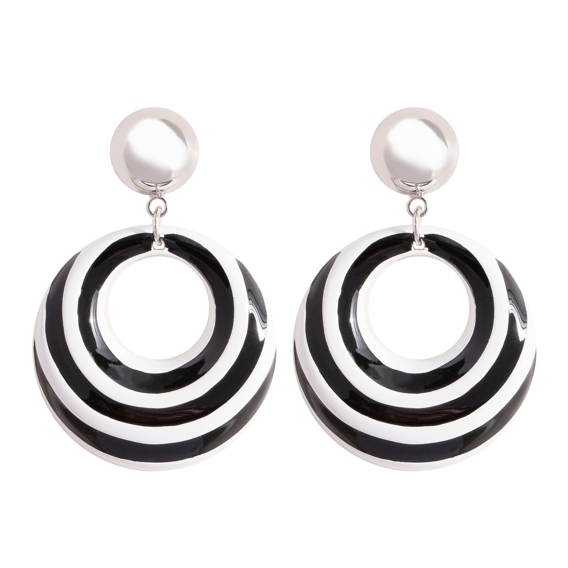 Zebra Striped Circle Drop Earrings, Enamel Statement Stripped Earrings with Steel Stud, Exaggerated Niche Style Dangle Earrings